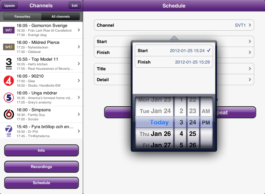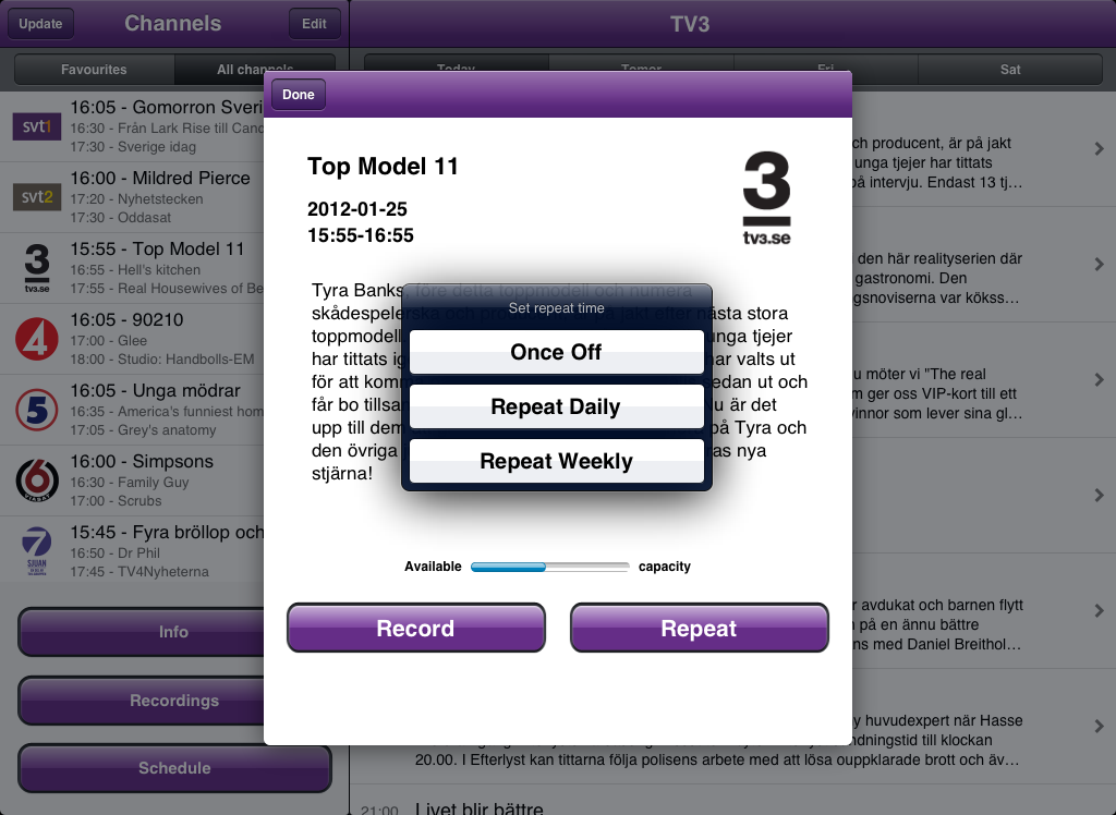 We were commissioned to develop an app on behalf of a digital TV company to allow their customers to remotely manage their PVR (Personal Video Recorder) set top box.