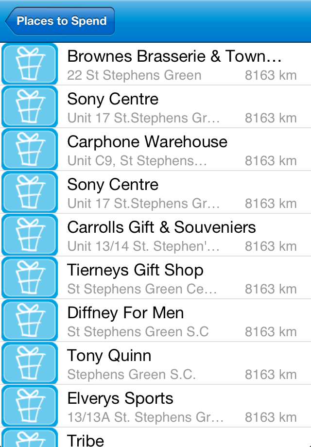 - Allows users to locate and share retailers that accept the gift vouchers when they are out and about