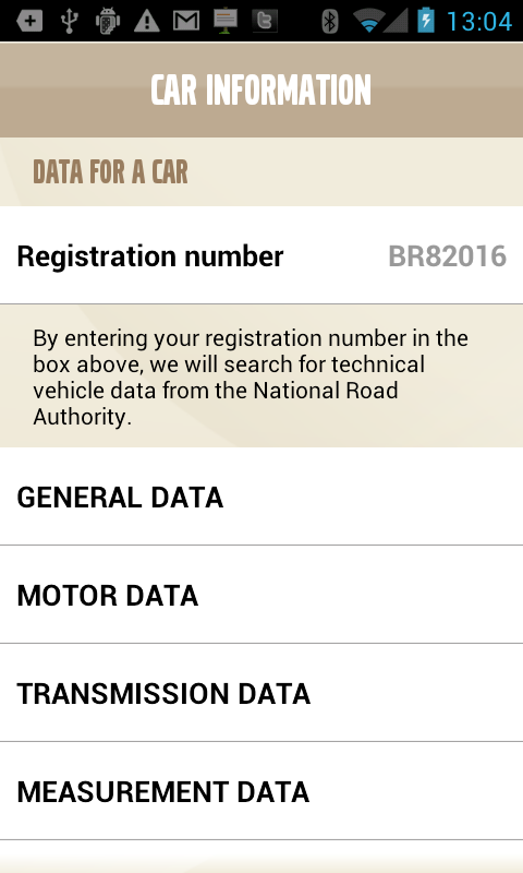 The user can enter their registration number and retrieve from the server detailed information on all aspects of their exact model.