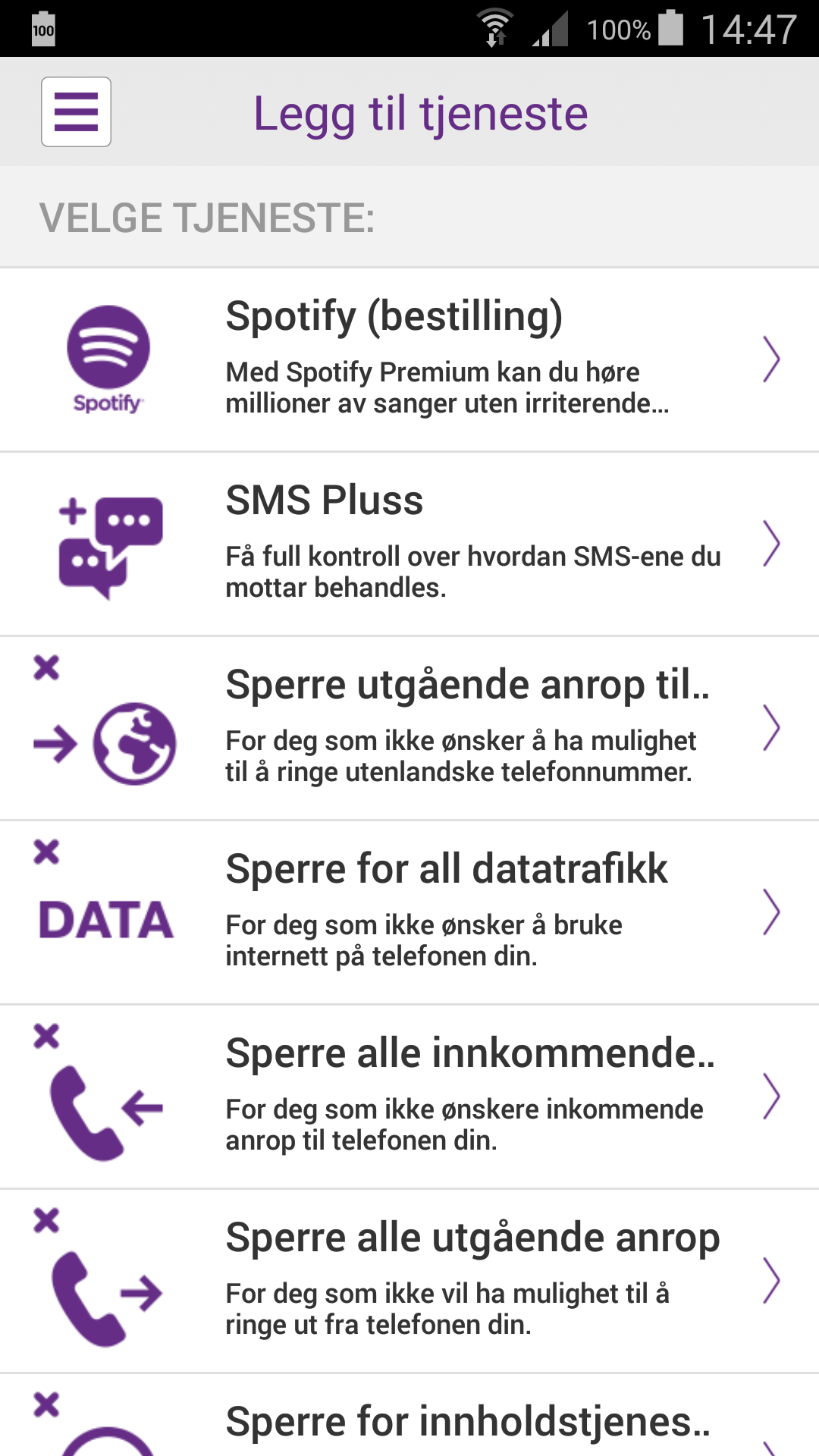 See current active services, subscribe to new services, and unsubscribe from services.