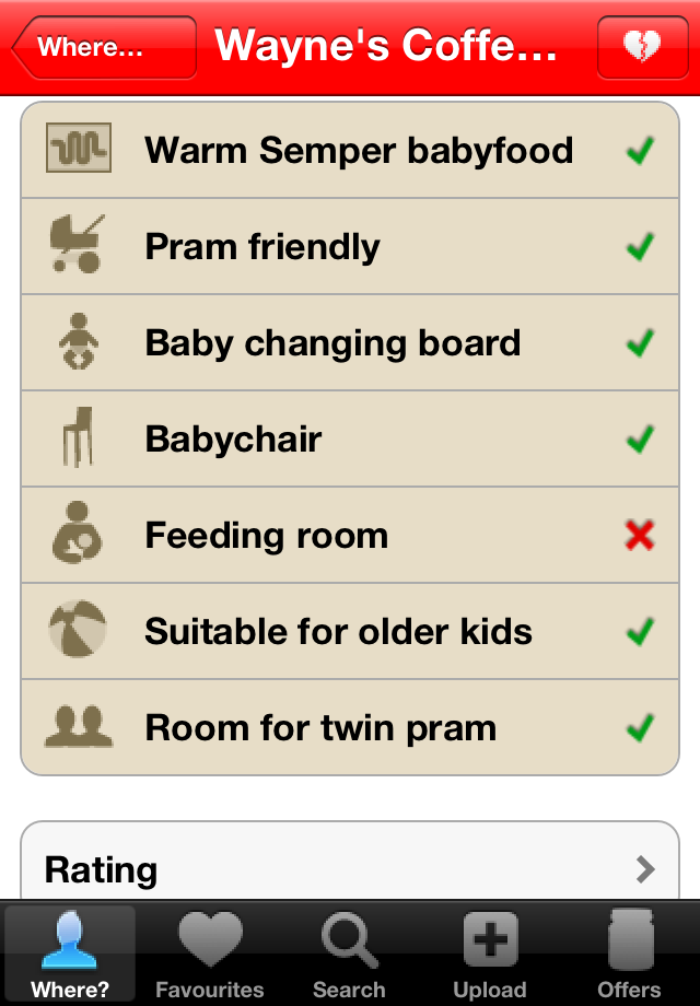 - Locations are categorised by type and the facilities available can be seen